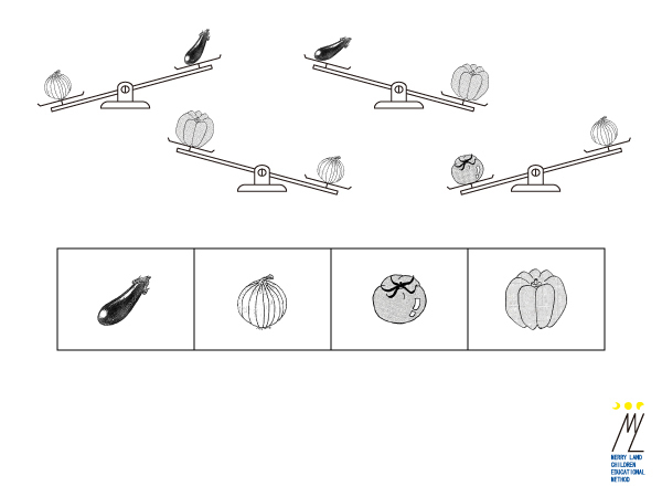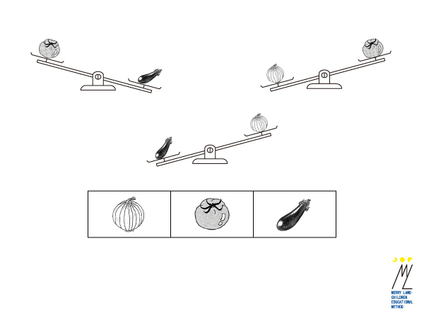 これで、「トマト<タマネギ<ナス」という順で重くなることがわかりますね。