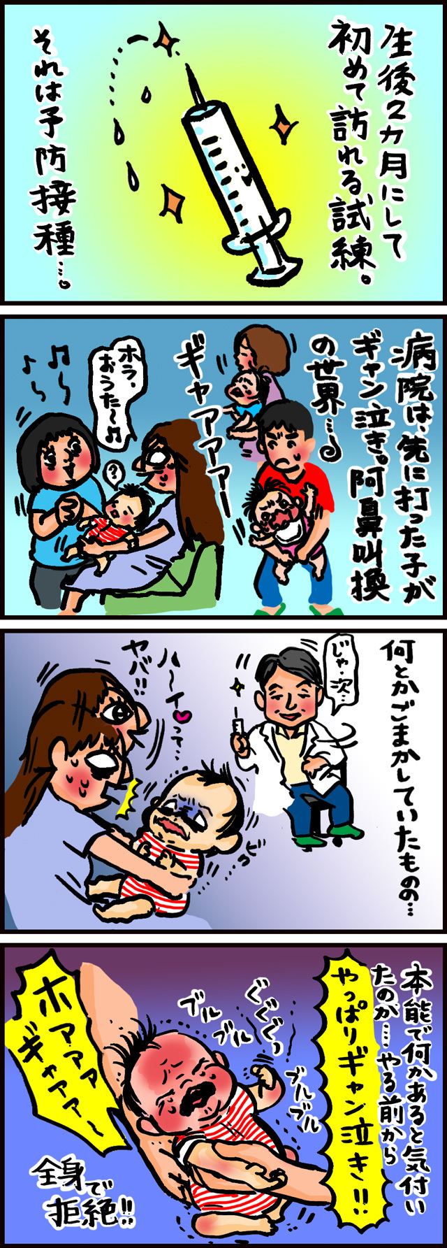 生後2ヶ月にして訪れる最初の試練、それは予防接種…。