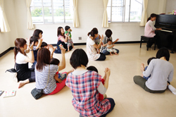 リトミックや助産師によるセミナーの他、一時預かり、定期利用保育もあり、働くママを応援。