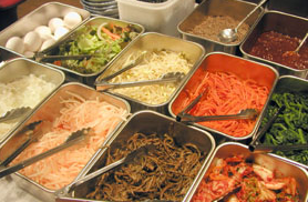 ランチの目玉はテレビでも紹介されているナムルバイキング!10種類以上ありオリジナルのビビンバを作るのも楽しいです。子どもに取り分けるのにもいいですね。