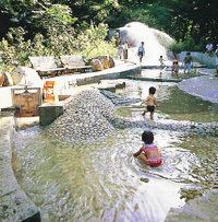 じゃぶじゃぶ池は水が溜まっていて小さな子供でも安心して遊べる場所から、上から水が流れてくる場所など、幼児~小学校低学年の子ども達が楽しめるよう趣向を凝らした造りとなっています。