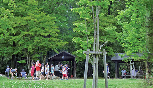 キレイに手入れされた芝生の上で子どもを自由に遊ばせることができ、清潔なトイレも完備されています。