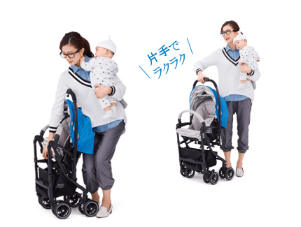 ママ一人で片手でサッとベビーカーを持ち運ぶことができれば、安心していろいろなところにお出かけできますね。