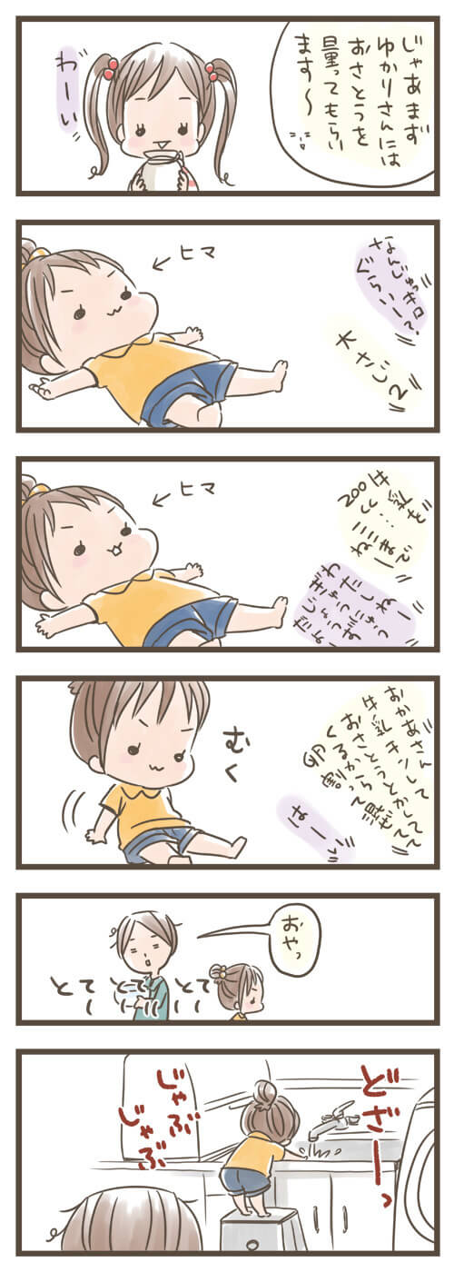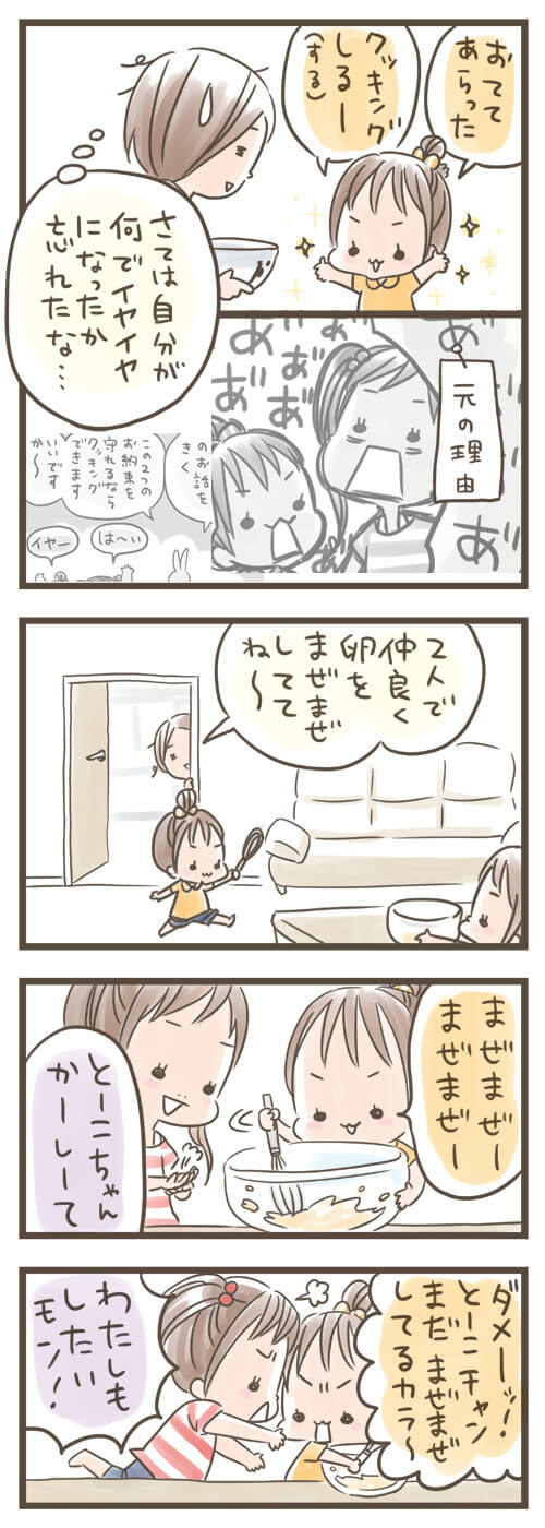 そうしていたら子供たちの方がそれを覚えて、休日の朝、お父さんが出かけると、前もってクッキングの予定が無くても「クッキングするー!」と言うようになりました。