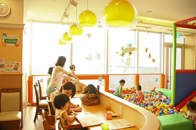 子どもが遊びに夢中になっている間にママ同士でカフェタイムを楽しんだり、あるいは一緒に遊んだりと、小さな子連れのファミリーなら誰でも楽しめるスペースです。