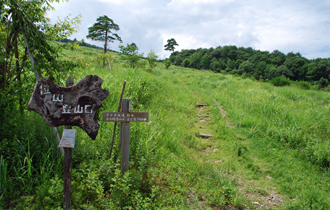 少し歩くと、右側には鳩吹山(はとぶきやま)が見えてきます。更に登ると 「西山休憩舎」 に行き当たります。往復約1時間とちょっとのハイキング。