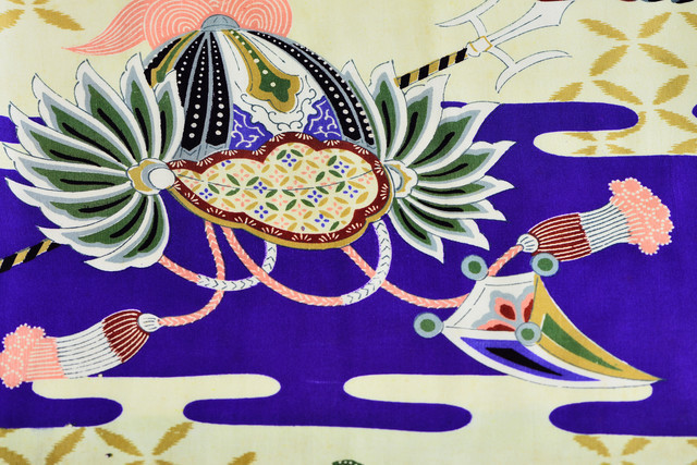 男の子の着物の柄は、兜、鷹、束ね熨斗(たばねのし)、虎、太鼓、松、龍、鯉などがあります。