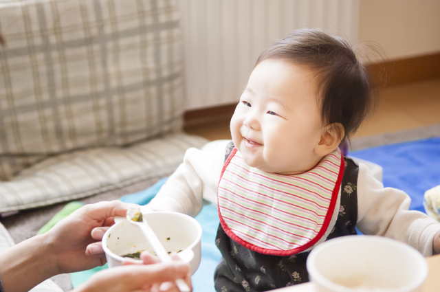 食べる量よりも、食べ物を口に入れられた、飲み込められたことを認めてあげましょう。食事タイム以外の時にもスプーンを持たせて、慣れさせるのも良いでしょう。