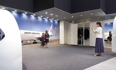 まず受付で参加証をもらって入場すると展示エリアがあります。展示エリアでは飛行機に関わるたくさんの仕事や日本航空の歴史、歴代のJALの制服など興味深い内容が紹介されています。