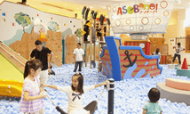 ボールプールや滑り台、トランポリンなど体を動かすことができる「アドベンチャーオーシャン」。おままごとやごっこあそび、絵本で遊べる「カラフルタウン」。ゲームやパズルで遊べる「トイフォレスト」、プラレールやブロックで遊べる「プレジャーステーション」。0~24ヵ月の赤ちゃんが遊べる「ハイハイガーデン」