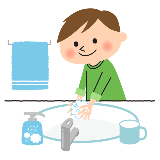 お家でも、お出かけから帰った時には、子どもが自分で手を洗い、うがいをし、タオルをかけられるようにやらせましょう。