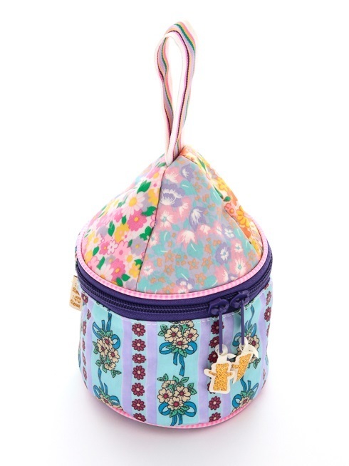 ファスナーでぐるりと口が開き、上下で布の柄も違うのもかわいいですね。