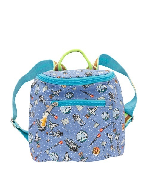 2歳ごろ、あんよができるようになったら持たせることができるベビーリュックは、4590円。宇宙の柄で、ロケットや地球が描かれています。