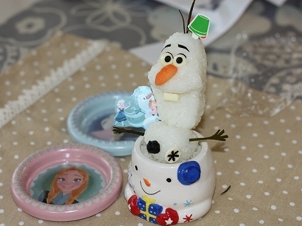 あまり小さい円形のお弁当箱だとオラフが苦しそう?になるので注意が必要です。ある程度余裕を持った大きさのお弁当箱にしてください。