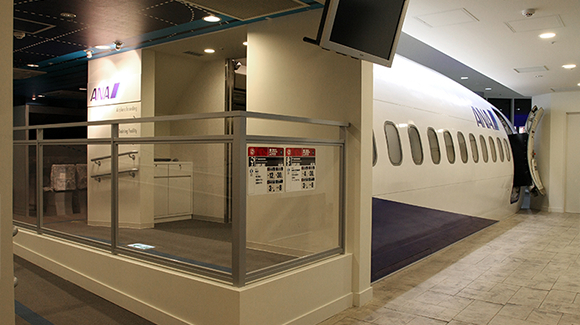 キャビンアテンダントは機内アナウンスや、本物の飛行機を利用した立ち居振る舞いの練習や保安説明などの体験ができます。待ち時間には飛行機の乗客役も体験できますよ。
