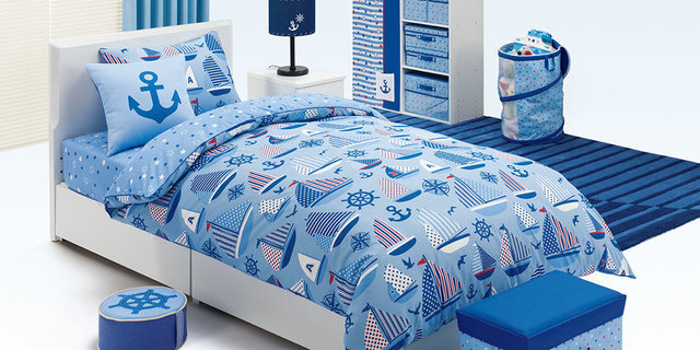出典:www.nitori-net.jpカラーボックスに専用のカーテンを取り付ければ、クローゼット感覚で使用することができます。男の子にぴったりのマリン柄のカラボ用カーテンを取り付けて、ベッドカバーやラグなども同系色でそろえましょう。