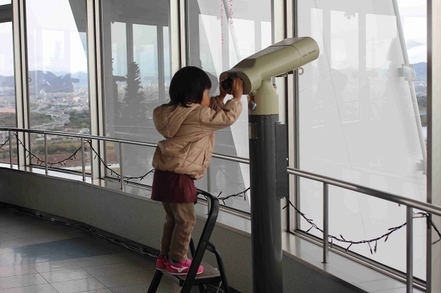 岐阜方面、名古屋方面と360度ぐるりの景色が眺められ、双眼鏡はステッパーを使うと子どもでも使うことができます。双眼鏡なしでも景色は抜群で、リフレッシュすることもきっとできるはずですよ。