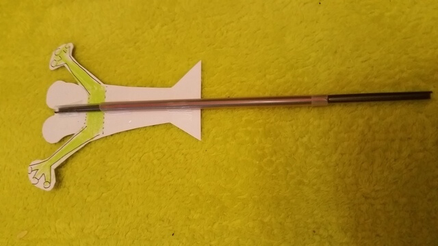 (5)太いストローから突き出した細いストローを頭の部分にセロテープで貼り付けます。