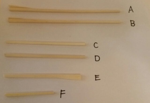 (1)割りばしを必要な長さに切っておきます。