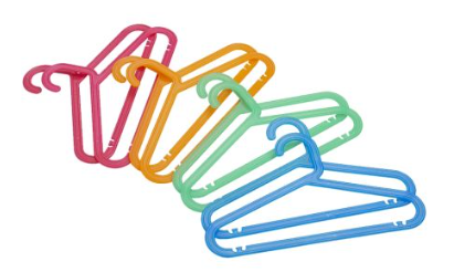ポップでカラフルなカラーの揃ったハンガーは、あるだけでお部屋が明るくなるはず。プラスチック製ですが割れにくい柔軟性のあるしっかりとした作りで子どもも扱いやすいです。