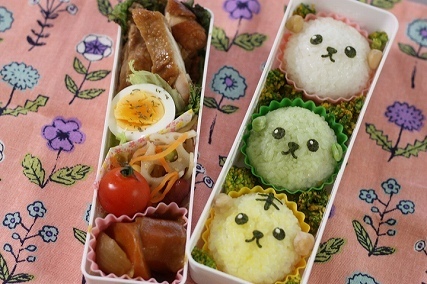 ご飯専用に丸い容器を用意すれば簡単にできるお弁当です。