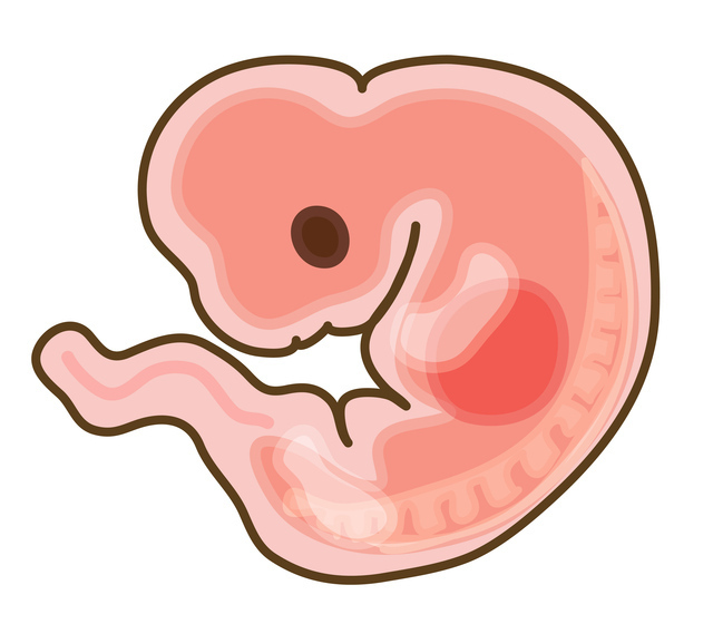 赤ちゃんは頭殿長(座高)が8~14mmほどになり、あずき程度の大きさになり「胎芽」と呼ばれる時期。「器官形成期」とも言われ、妊娠初期のこの時期に中枢神経や心臓、手、足など器官のもとが急速に発達して作られます。