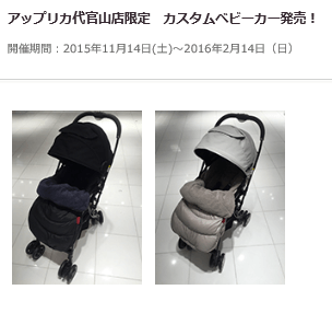 出典:www.aprica.jpアップリカでも代官山店にて2016年2月14日までの限定ではありますがカスタムベビーカーのイベントを行っています。