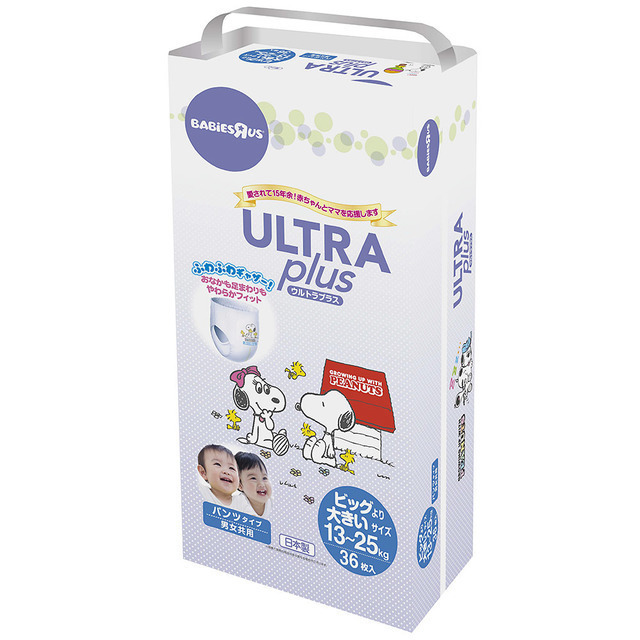 出典:www.toysrus.co.jp最後にご紹介するのは、「ベビーザらス限定 ウルトラプラス パンツ BIGより大きいサイズ」です。体重目安は13~25kg。キャラクターにはスヌーピーが使われています。