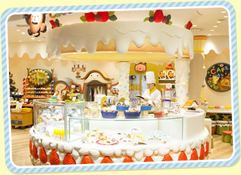 システムは、入場無料・時間&人数無制限・予約不可・小学校6年生までの子どものみ入場可。店内では160~200円の焼きたて菓子が販売され、パティシエの本格的なお菓子作りを間近で見られ、お買物後には子ども達が楽しめるゲームもあるそうですよ。