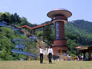 シンボルであるきのこタワーは、名前の通りきのこのような形をしており、高さ30mの展望台をシースルーエレベーターで昇れば、爽やかな風と自然豊かな眺望が楽しめ、公園全体を見渡すことができます。