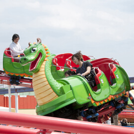 ジェットコースターの「ドラゴンコースター」は、パパやママと一緒なら3歳から乗ることができるのでジェットコースターデビューにもおすすめです。
