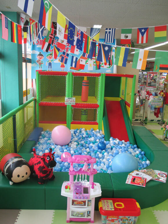 小さな子ども向けのキッズコーナーでは、機関車トーマスのコイン遊具や1時間300円で遊べる立体遊具もあるのもうれしいですね。
