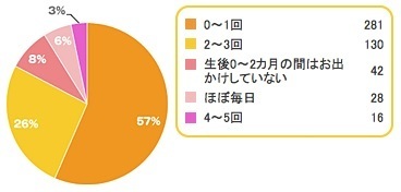 出典:www.combibaby.com生後2ヶ月までのおでかけは、週に3回までが全体の83%を占めています。食材や日常品の買い出しでも、赤ちゃんにとっては大遠征。