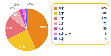 お子様の人数と年齢から考えると、「お子様は1人で0歳〜2歳」という方の割合が多いようです。また、「お子様が2人で上の子は3〜5歳、下の子が0〜2歳」という方も多くいらっしゃいました。