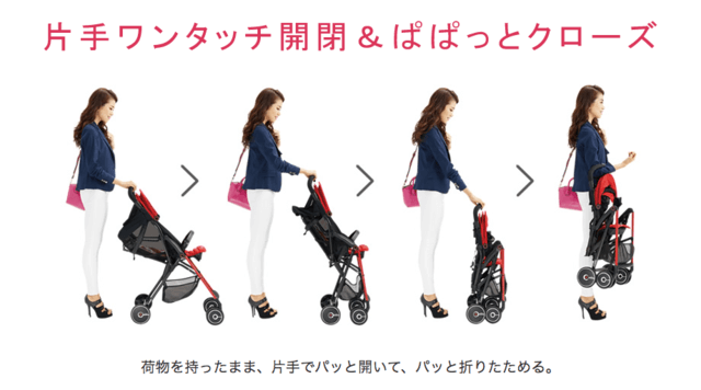 出典:www.combi.co.jpおでかけ先では、ベビーカーを畳む機会も多いですよね。1人で赤ちゃんを連れておでかけする時は抱っこをしながらベビーカーの開閉が必要となるため、苦労することも。