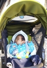 車での移動が多いので、軽いベビーカーは車に乗せたり降ろしたりしやすく満足しています。背が高い主人もハンドルが高く、押しやすいと話しています。
