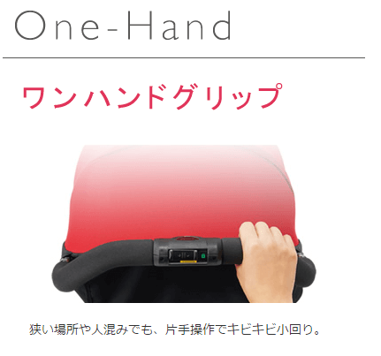 スタイリッシュさを演出しているのが、ハイポジションハンドル。ヒールを履いたママにとっても、背の高いパパにとっても押しやすい作りになっています。もちろん、そうでないママパパにも押しやすいですよ。