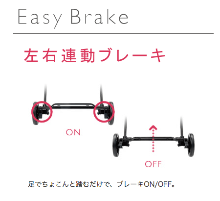 出典:www.combi.co.jpベビーカーのブレーキ機能は、車種によって大きく異なります。車輪1つにつき1つといった片側ずつのブレーキを備えた車種もあります。