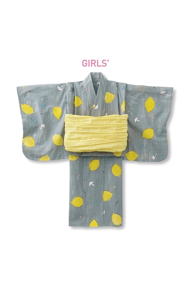 出典:www.felissimo.co.jp夏に着たい浴衣も、他の子とかぶらなさそうなレモン柄がフェリシモにはあります。京都、Subikiawa食器店とのコラボアイテムで、綿100%のスラブ糸の生地。さらっとした生地で夏の暑い日にも着られます。ウエスト部分には紐つきで、着付け初心者のママでもOK。