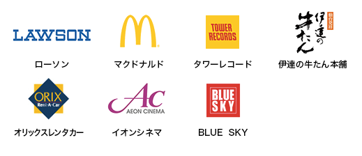 「ローソン」「マクドナルド」「JAL」「JTB」「combi」「J!NS」「紀伊国屋書店」「朝日新聞デジタル」「アート引越しセンター」「カラオケビッグエコー」「伊勢丹」「高島屋」「三越」・・・
