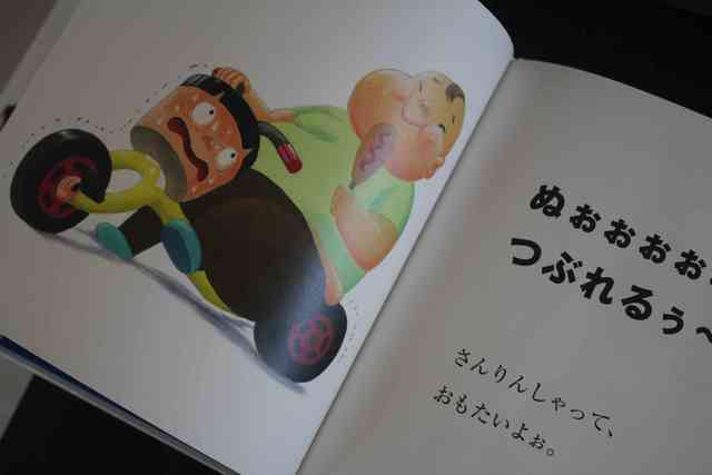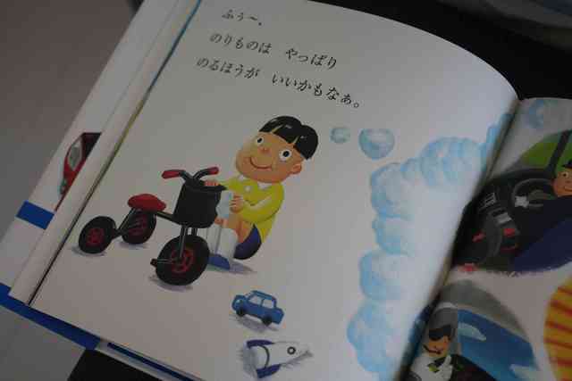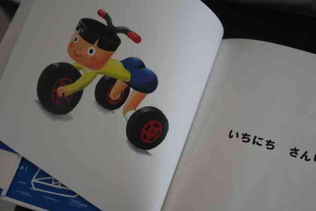 「いちにちのりもの」では、コンクリートミキサー車になった主人公を、「これ、うえええとか言ってるじゃん!」なんて突っ込んでる始末です。