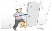 □バールや堅い長いものを活用し、てこの原理でドアをあける。