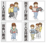 □搬送する際は、できるだけ多くの人数で搬送しましょう。