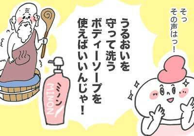 子どものお世話で、お風呂上がりの保湿もままならないママたちも、ミノンならお風呂上りに保湿ができない日があっても、保湿洗浄できているのでカサカサは気になりません。子どもの世話が一区切りついたら、ゆっくり自分の肌も保湿してあげましょう。