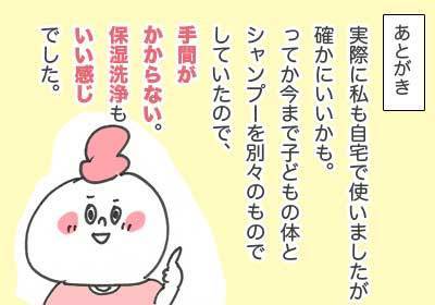 液体タイプの全身シャンプーはからだも顔も頭皮も洗え、赤ちゃんも使えるので、切り替え時には便利。コストパフォーマンスの良さもおすすめです。