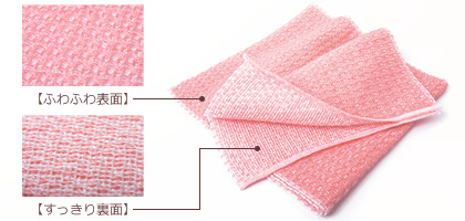 表面はふわふわ洗浄用、裏面はすっきり洗浄用になっており、全身はふわふわ部分で、汚れの強い部分は裏面ですっきり洗うことができます。