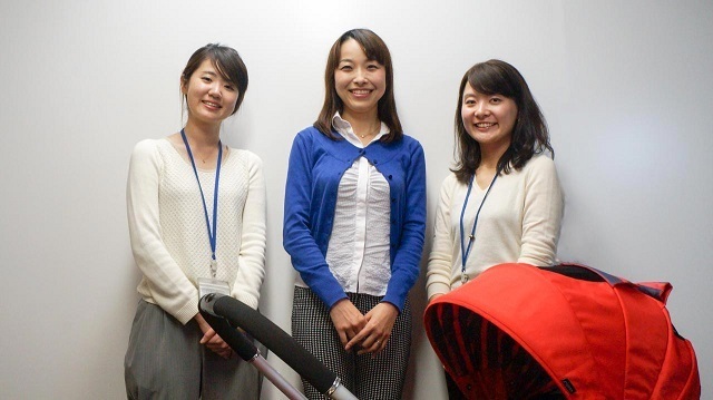 ベビーカーと女性3人,