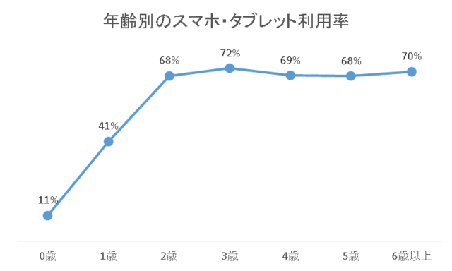 このことから、多くの子どもが2歳になるまでにスマホ・タブレットを利用するようになることが読み取ることができます。