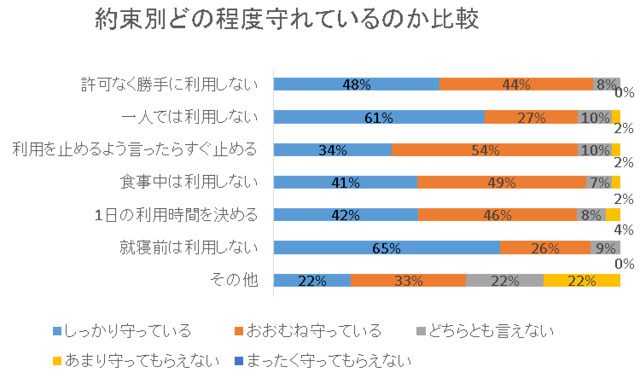 内容によって多少の差はあるが、大多数の家庭で約束は守られている