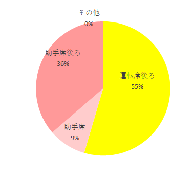 チャイルドシートの設置場所は運転席後ろが最も多く、次いで助手席後ろと、後部座席に子どもを乗せるママパパが多いようですね。